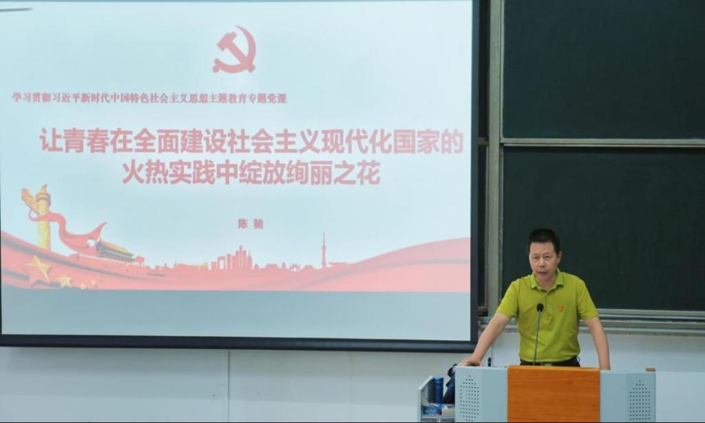 陈驰导师以《让青春在全面建设社会主义现代化国家的火热实践中绽放绚丽之花》为题,以近期习近平总书记视察广东开篇,从“生逢其时赋予远大梦想、奋发有为贡献青年力量、自强不息尽显青春气息”三个方面展开,生动形象地为学员们讲解我国近年来的科技成就、新时代面临的重大风险和严峻挑战,鼓励青年马克思主义者要做奋发有为的时代青年。